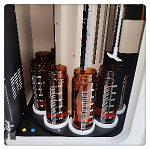 自動更換硅酸鎂:無需人工填充,每次使用時(shí),硅酸鎂儲存器通過定量裝置,自動排出標(biāo)準(zhǔn)用量的硅酸鎂,通過氣流方式將硅酸鎂顆粒與萃取液充分振蕩吸附,每次吸附后自動排出使用過的硅酸鎂,并自動清洗,避免交叉污染;